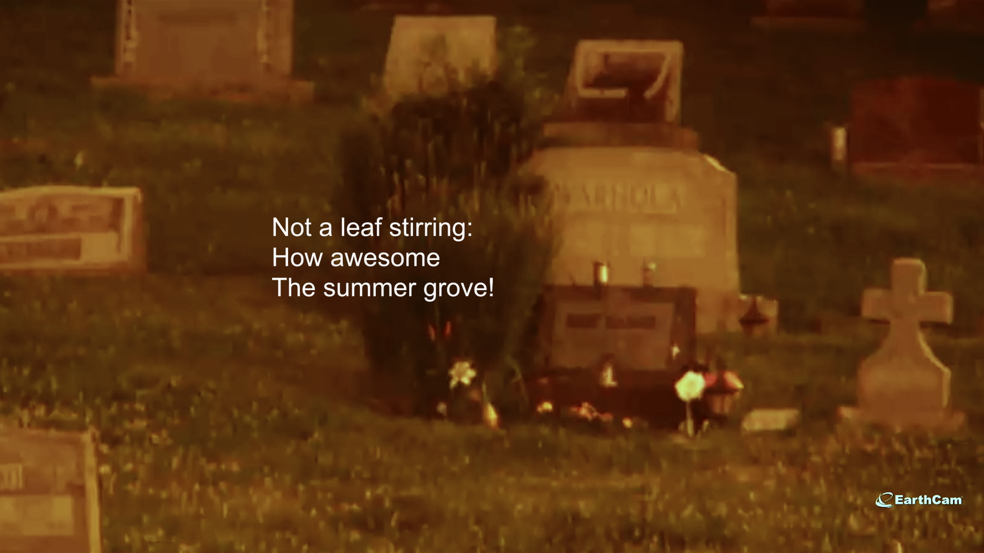 The work also asks us to consider the status of the image today. Jude’s source material is a live webcam, an open and public form of surveillance. Tourists who perform gestures of homage at Warhol’s grave – posing for selfies, arranging soup cans, leaving flowers – unwittingly become actors in a global theater. Their visibility echoes Warhol’s promise of “fifteen minutes of fame,” while Jude’s reappropriation of these images situates the work in the lineage of found-footage cinema. In this sense, Sleep #2 speaks not only to Warhol’s legacy but also to the contemporary condition of ubiquitous cameras, where authorship is dispersed, and images circulate freely without origin or end.